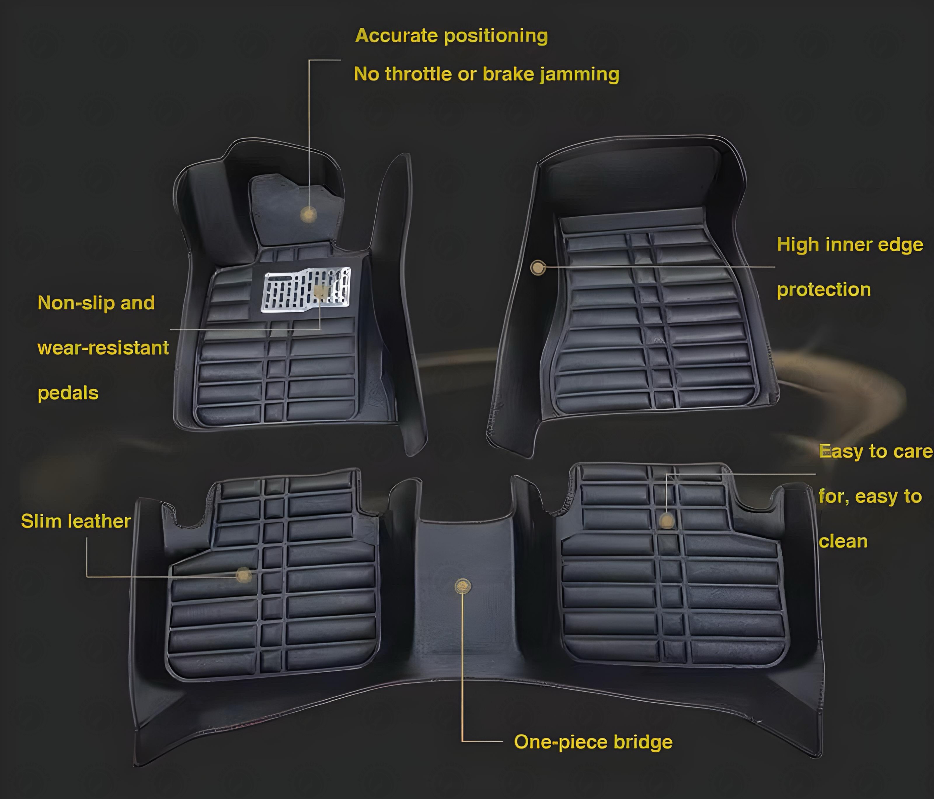 If youre looking for custom floor mats for your Toyota Corolla 5D, weve got you covered. Our black floor mats are designed specifically for the 2008-2014 model years and come in a set of three to ensure that your entire floor is protected. Not only do these mats look great in your car, but they also provide excellent protection for your cars flooring. Made with high-quality materials, these mats are durable and long-lasting. Plus, they are easy to install and clean, making them the perfect addition to any Toyota Corolla 5D. In addition to their functionality, these custom floor mats also add a touch of style to your cars interior. The sleek black - beige design complements the overall look of your car, and the custom fit ensures that they stay in place and dont shift around while youre driving.