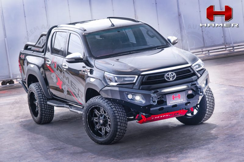 HAMER KING SERIES FRONT BAR IS SPECIFICALLY DESIGNED TO MATCH EACH VEHICLE PERFECTLY. NOT ONLY ADDING A TOUGH LOOK TO YOUR VEHICLE, BUT THE HAMER FRONT BAR ALSO PROTECTS THE FRONT PART OF YOUR VEHICLE DURING AN UNEXPECTED EVENT. STAY CONFIDENT IN EVERY JOURNEY YOU MAKE. HAMER FRONT BAR IS BUILT FROM 3 MM. THICKNESS STEEL. THE FRONT BAR COMES WITH 4 LEDs (FOG LIGHTS, DRL, POSITION LIGHTS, AND INDICATOR LIGHTS). IT IS WINCH COMPATIBLE (12000 LBS AND BELOW) AND ADOPTS ALL ORIGINAL SENSORS FROM THE VEHICLE. ENSURING YOUR SAFETY, HAMER FRONT BAR IS TESTED AIRBAG COMPLIANT.
