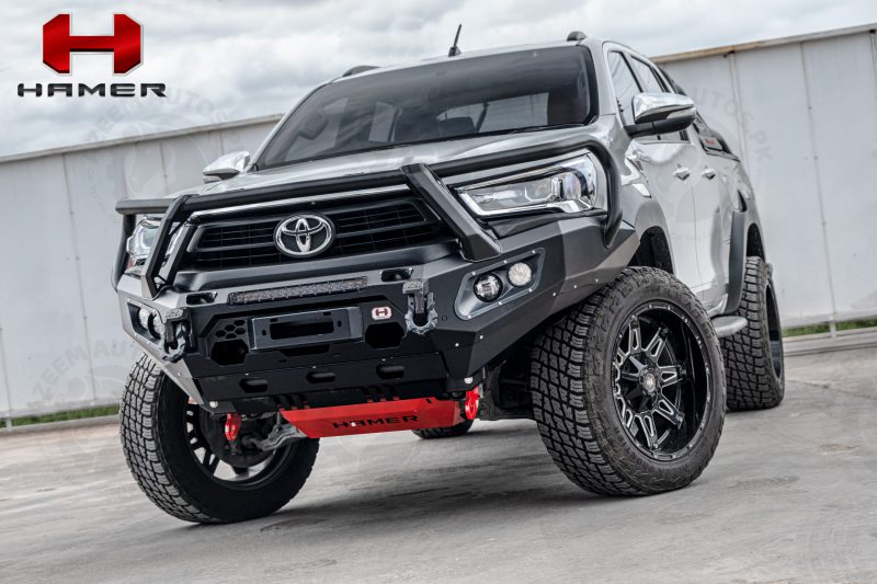 THE FRONT BUMPER OF HAMER’S KING-SERIES PLUS (PT) IS SPECIFICALLY DESIGNED TO MATCH EACH VEHICLE PERFECTLY. NOT ONLY ADDING A TOUGH LOOK TO YOUR VEHICLE, BUT THE HAMER FRONT BAR ALSO PROTECTS THE FRONT PART OF YOUR VEHICLE DURING AN UNEXPECTED EVENT. STAY CONFIDENT IN EVERY JOURNEY YOU MAKE. HAMER FRONT BAR IS BUILT FROM 3 MM. THICKNESS STEEL. THE FRONT BAR COMES WITH 4 LEDs (FOG LIGHTS, DRL, POSITION LIGHTS, AND INDICATOR LIGHTS). IT IS WINCH COMPATIBLE AND ADOPTS ALL ORIGINAL SENSORS FROM THE VEHICLE. ENSURING YOUR SAFETY, HAMER FRONT BAR IS TESTED AIRBAG COMPLIANT.
